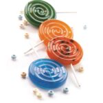 Kit de 2 plaques de 4 empreintes + 50 batonnets, utilisable également au four jusqu’à 230°C. Pour obtenir des sucettes