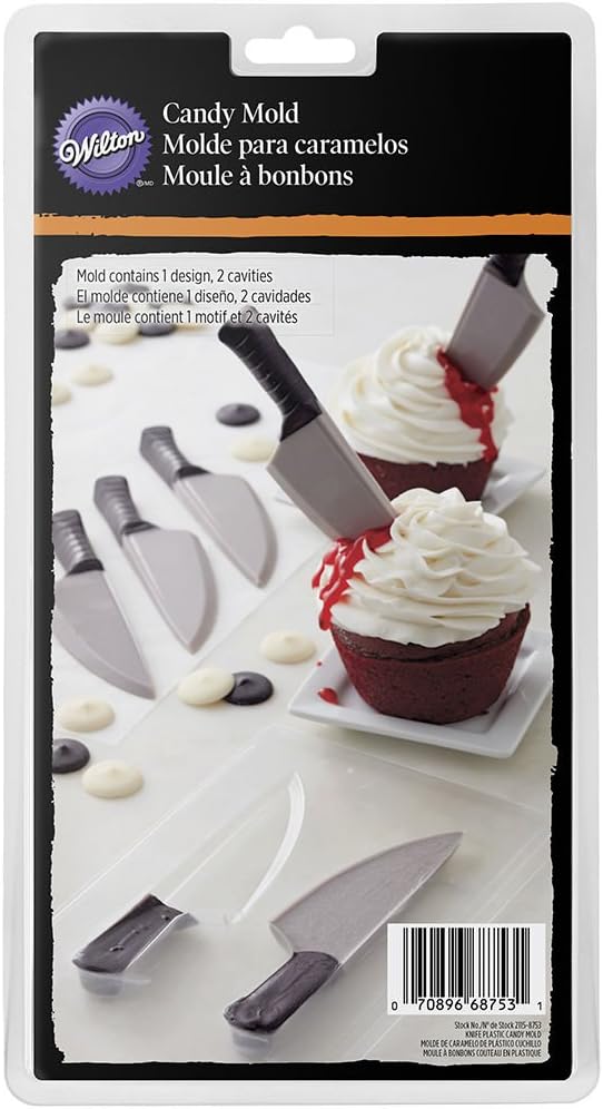 Réalisez des décorations en forme de couteau pour Halloween avec ces pastilles fondantes et ce moule de Wilton. Le moule est équipé de deux creux, que vous pouvez avec des pastilles de chocolat ou des pistoles fondantes.
