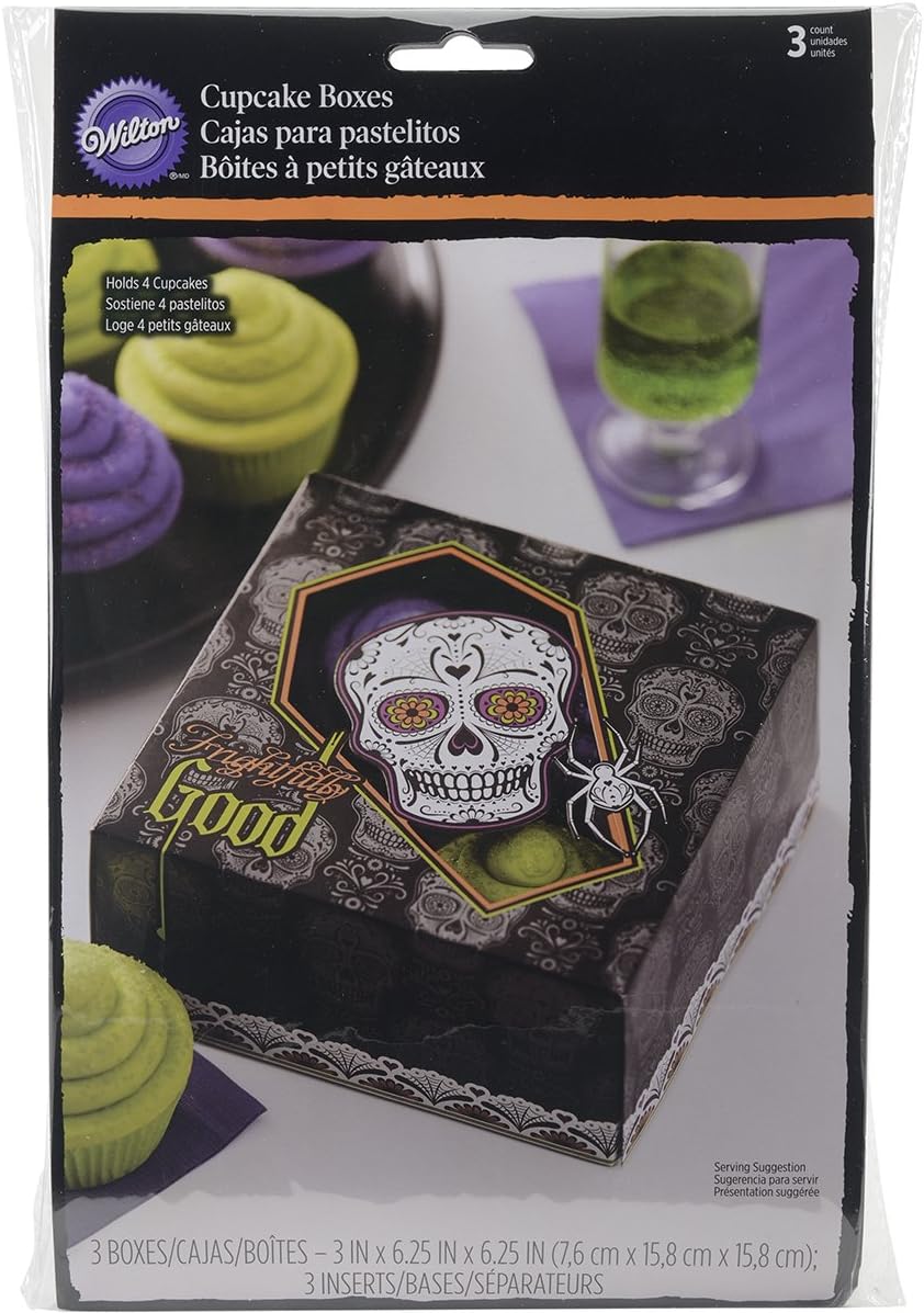 Faites de vos cupcakes d’Halloween un vrai cadeau si vous les emballez dans ces boîtes à cupcakes soirées de fête mortelles de Wilton.