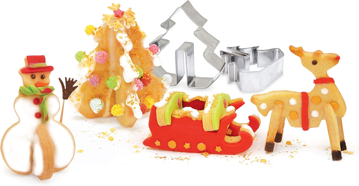 Réalisez de délicieux biscuits de Noël à assembler 3D avec notre kit de découpoirs en inox apte au contact alimentaire