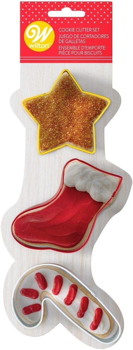 Cet ensemble de Wilton contient trois Emporte-Pièces en forme d’étoile, de chaussette et de canne à sucre. De quoi réaliser facilement de joyeux biscuits pour les fêtes ! Vous pouvez également utiliser les Emporte-Pièces pour découper des décorations en fondant ou en pâte d’amande.