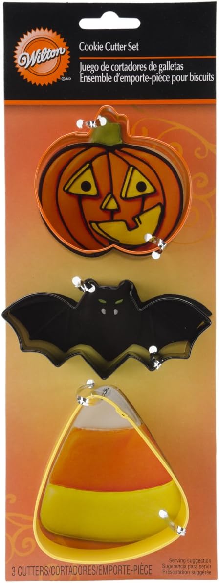 Wilton Cookie cutter ensemble comprend 3 pièces Cookie cutters : Chauve-souris , bonbons et citrouille. Ces Formes sont un formidable outil pour célébrer Halloween.