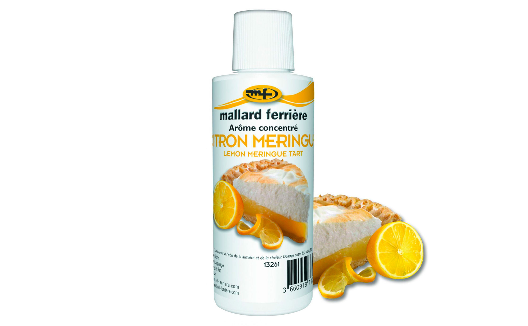 L’arôme concentré Citron Meringue Mallard Ferrière est élaboré à partir des meilleures matières premières aromatiques, par extraction et distillation. Sa puissance aromatique exceptionnelle met en valeur vos desserts et révèle toute votre créativité.