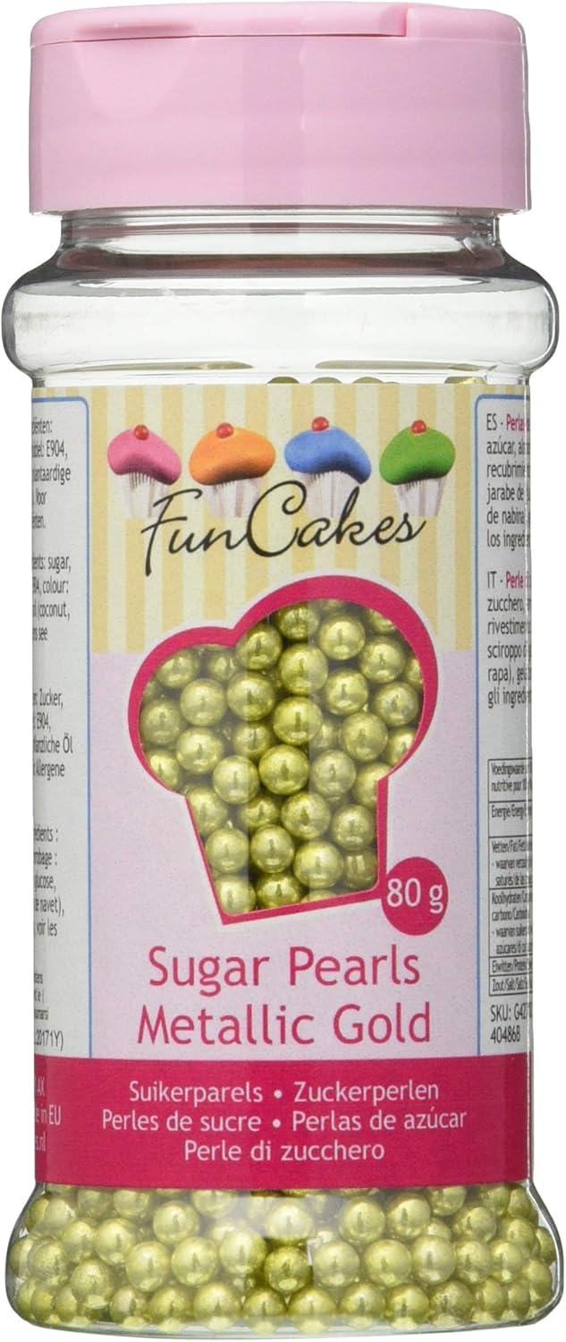 Les perles de sucre comestibles FunCakes de couleur dorée ont un diamètre de 4 mm.