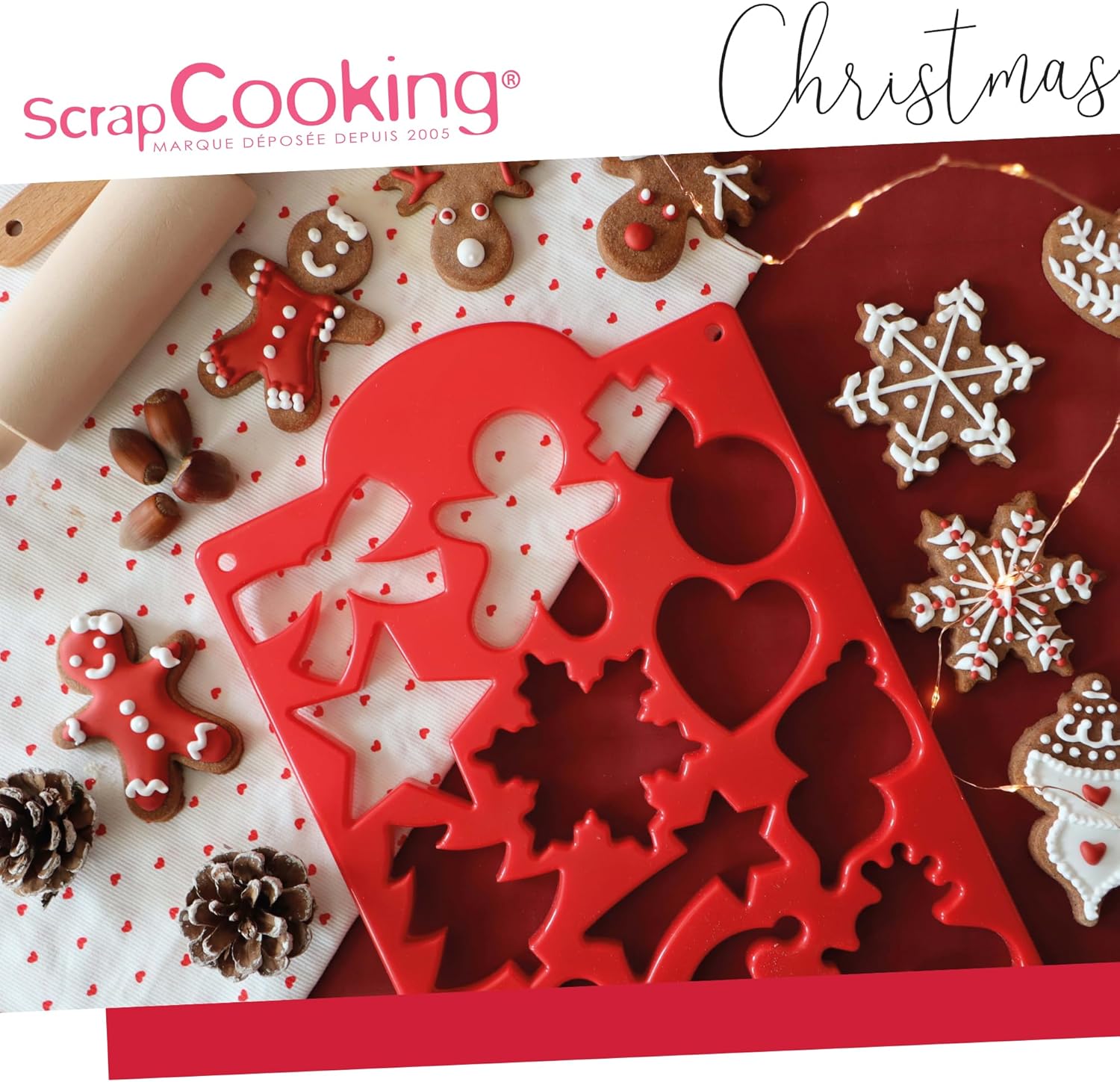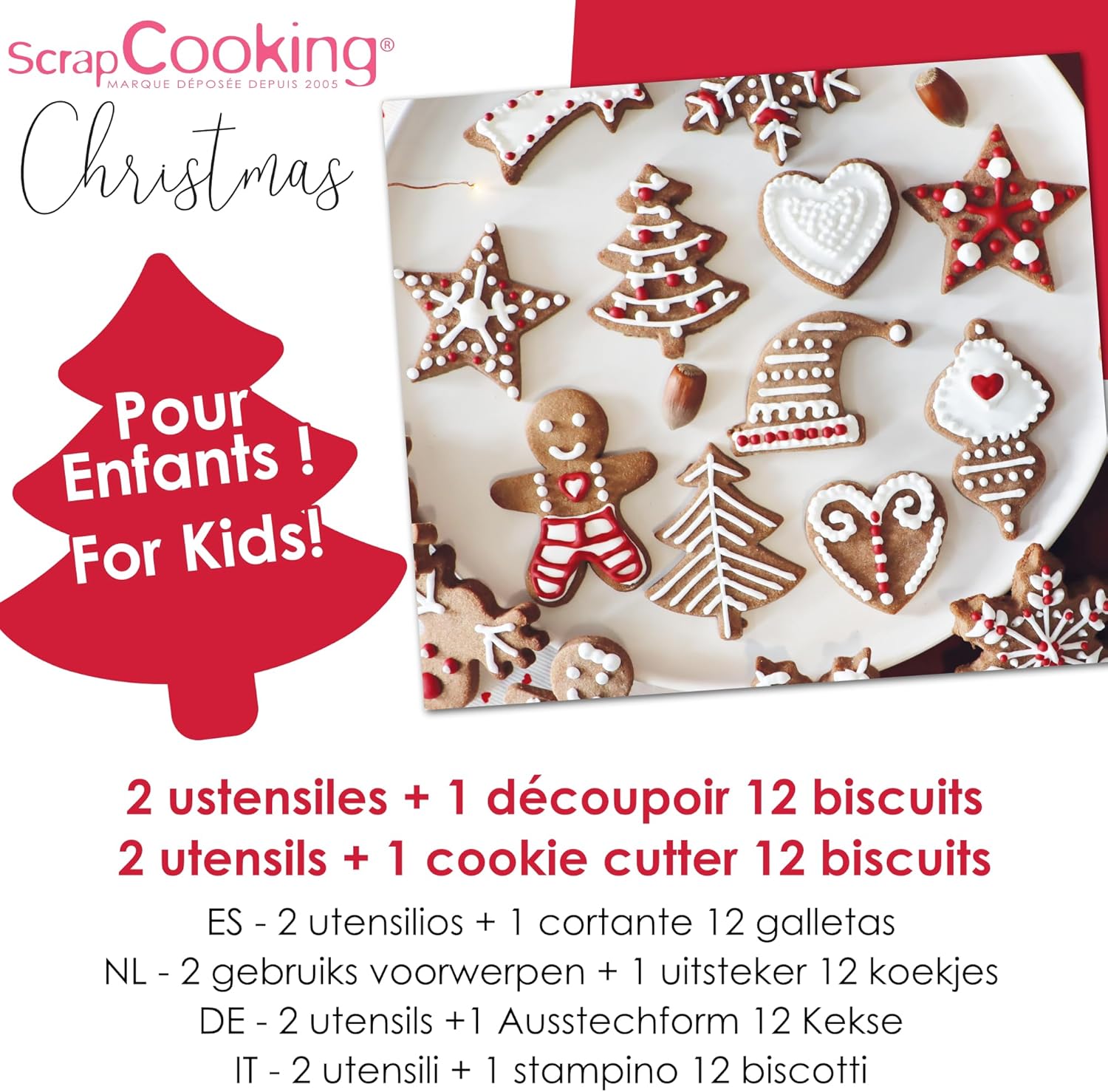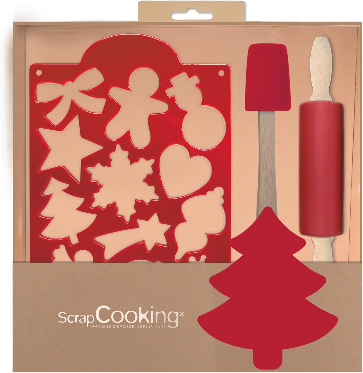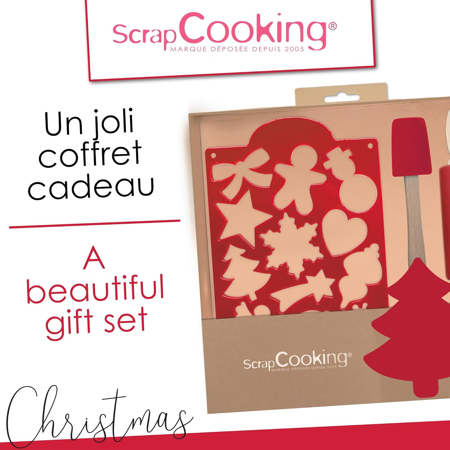 SCRAP COOKING – Coffret Ustensiles Biscuits de Noël pour Enfants – Avec Spatule, Rouleau & 1 Découpoir 12 Formes – Coffret Cadeau Moule & Emporte-Pièce – Bois Silicone Pâtisserie – 1142