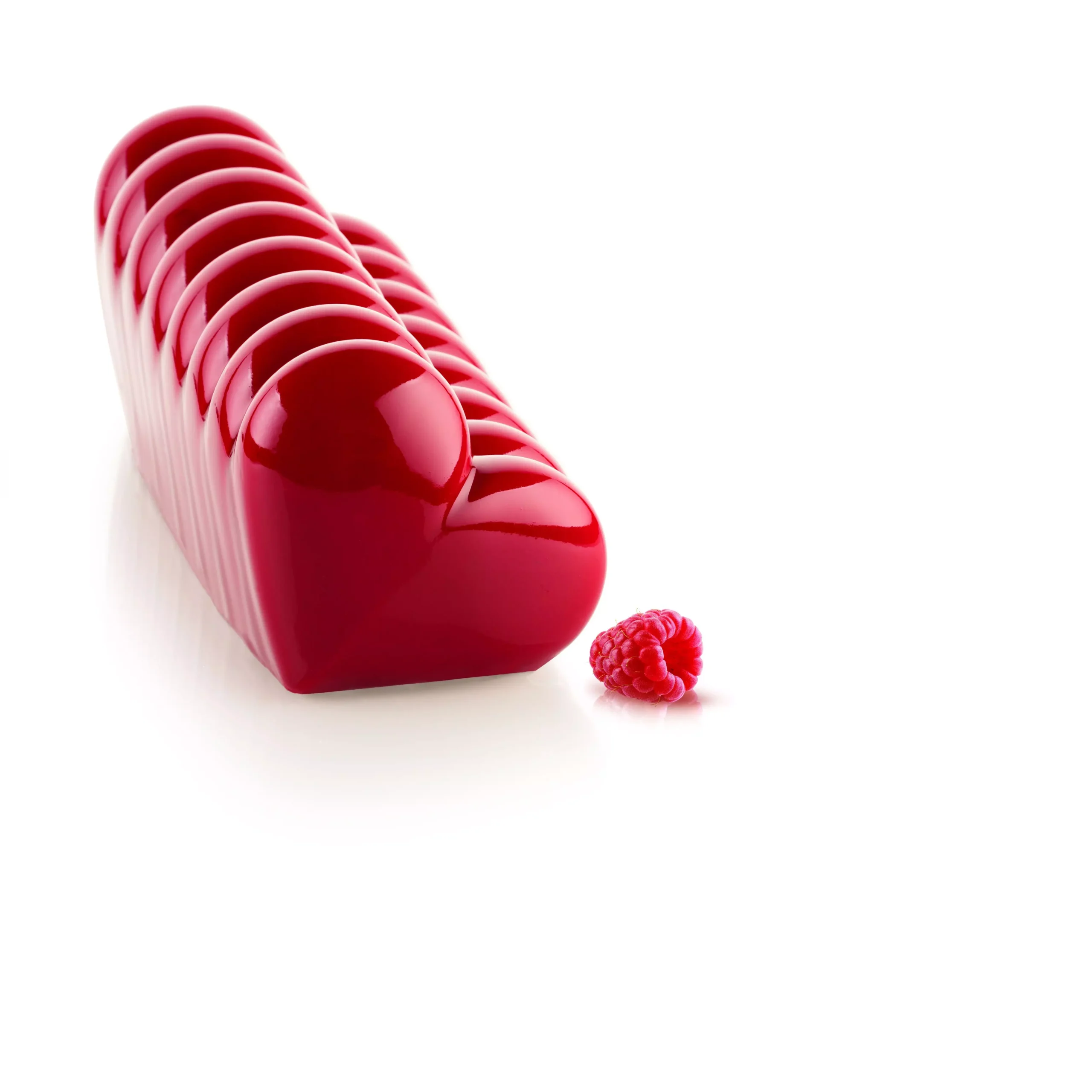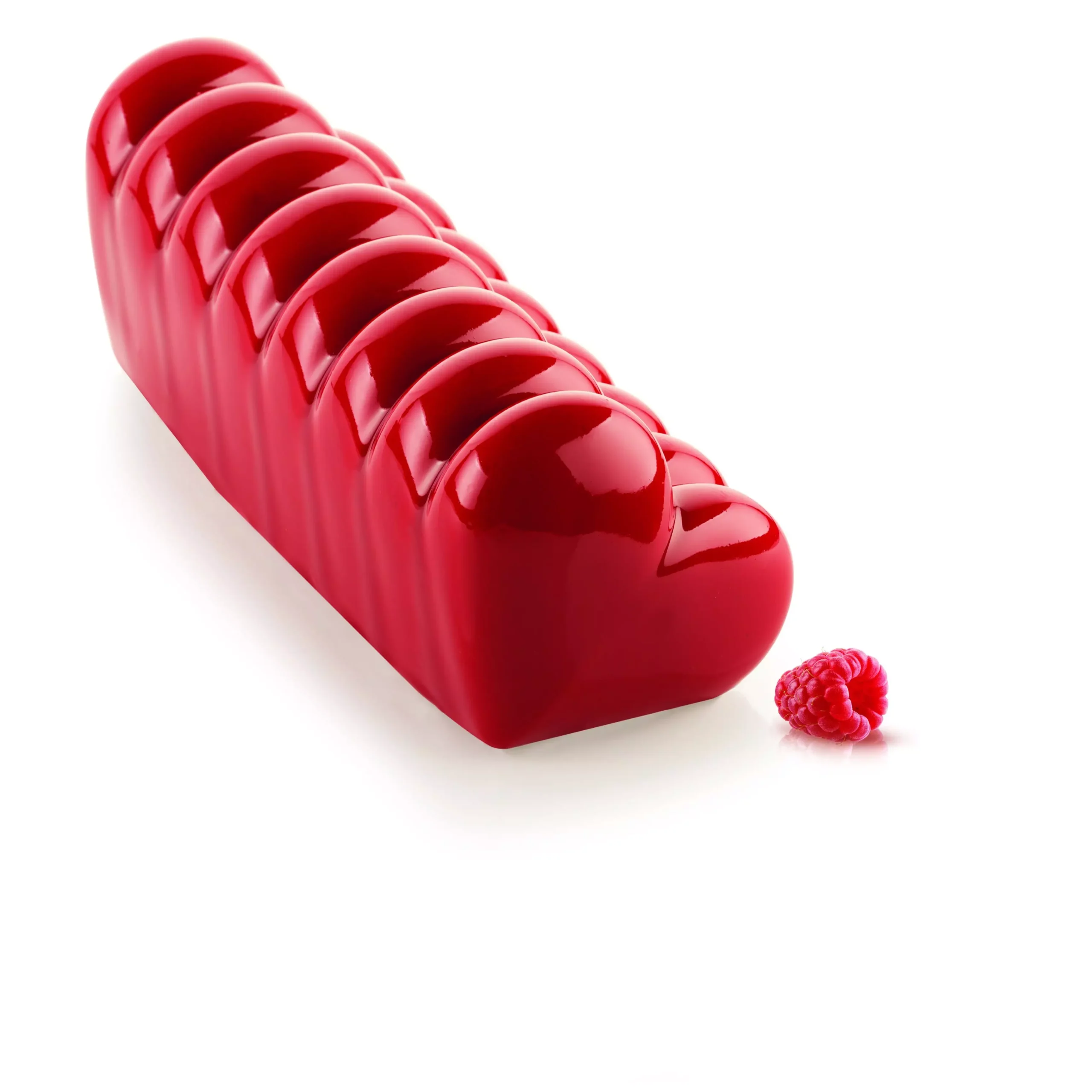Le moule Bûche Cœur 20.467.13.0065 est conçu en silicone platinum haute qualité pour réaliser des bûches cuites, glacées ou semifreddo. Sa forme unique permet d’obtenir, à chaque tranche, un cœur parfaitement dessiné, idéal pour des desserts élégants, romantiques et gourmands.
