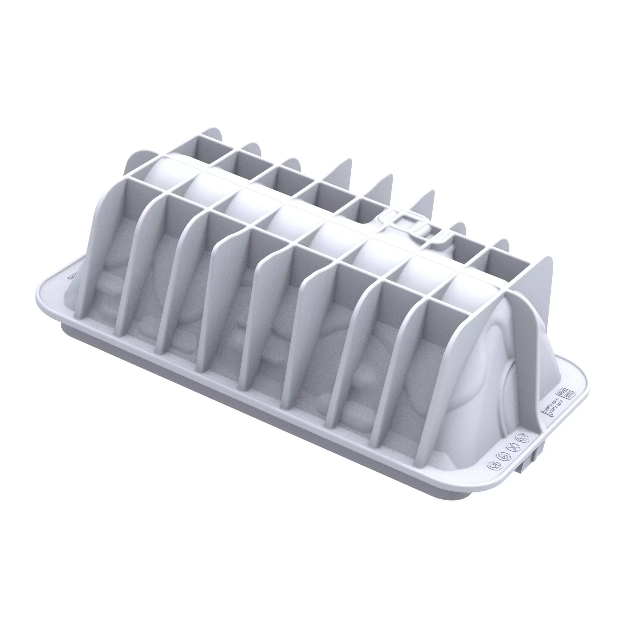 Winter Cottage 1100 est un moule en silicone platinum pour bûches sur le thème de l’hiver. Pour un insert parfait, utilisez l’Insert Buche (20.404.13.0065). 230×105 h 75 mm