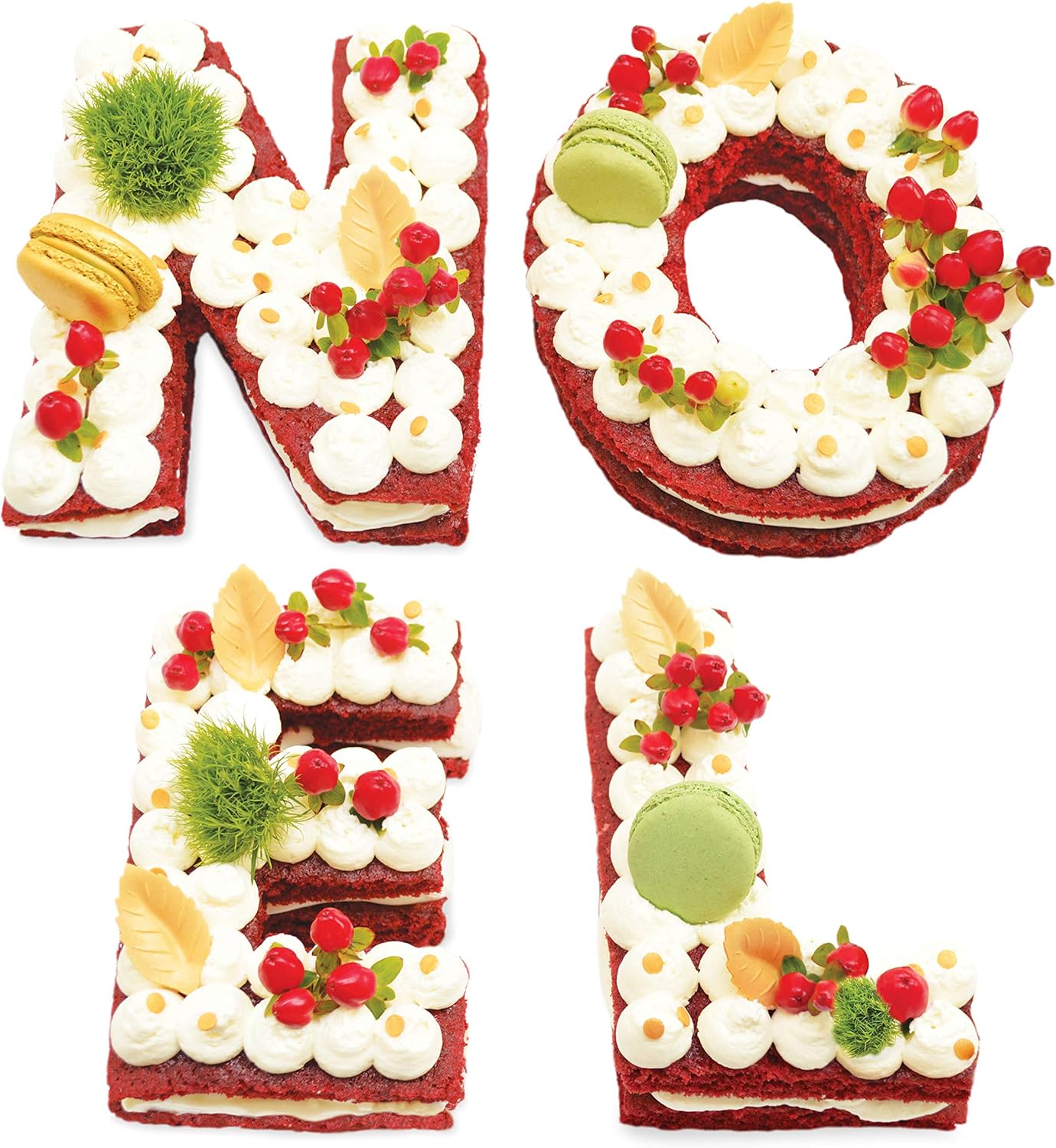 Kit letter Cake composé de 4 gabarits. Surprenez vos invités pour Noël avec un letter cake aux initiales Noël. Délicieux, léger et tendance le letter cake sera parfait !