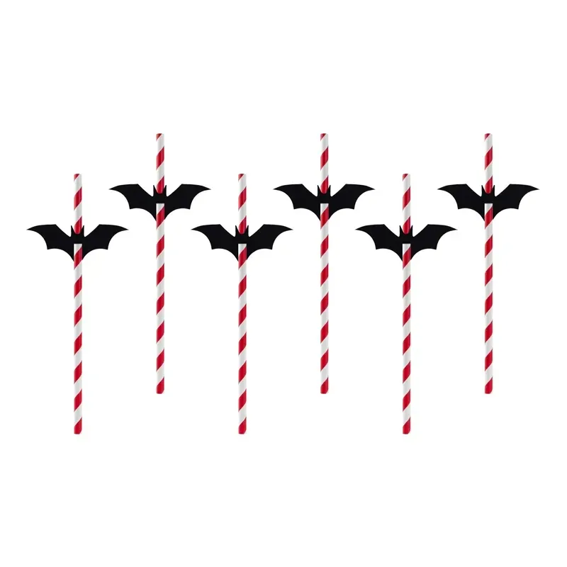 Pailles rouges avec chauve-souris noirs. Longueur 19,5 cm. 6 pièces.