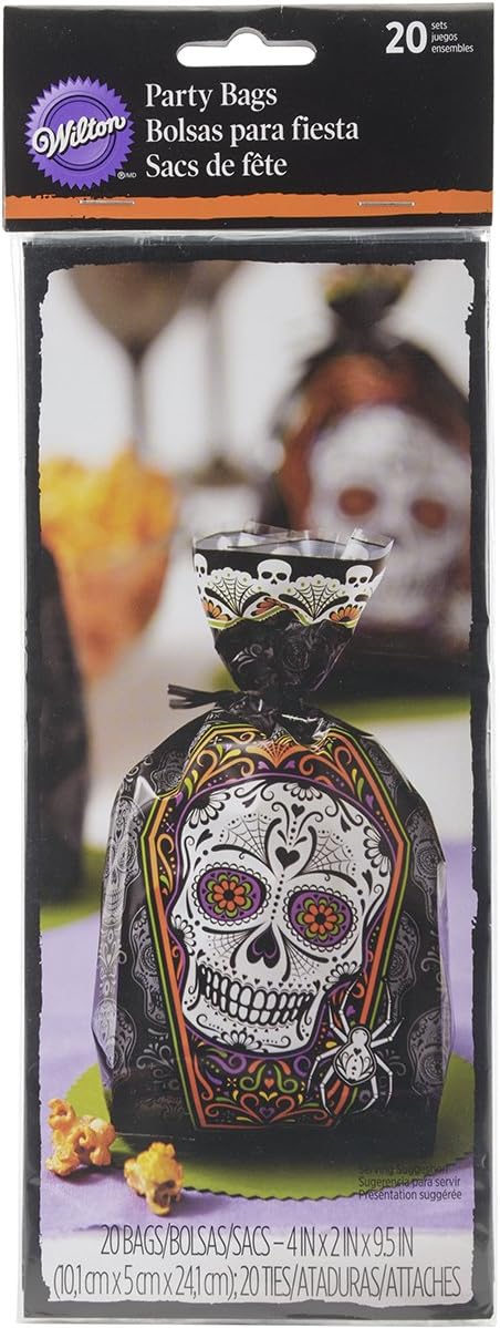 Ces sacs de soirées de fête mortelles sont dans le thème du Jour de la Mort. Et ils sont parfaits pour l’emballage des biscuits, des bonbons ou du popcorn d’Halloween.