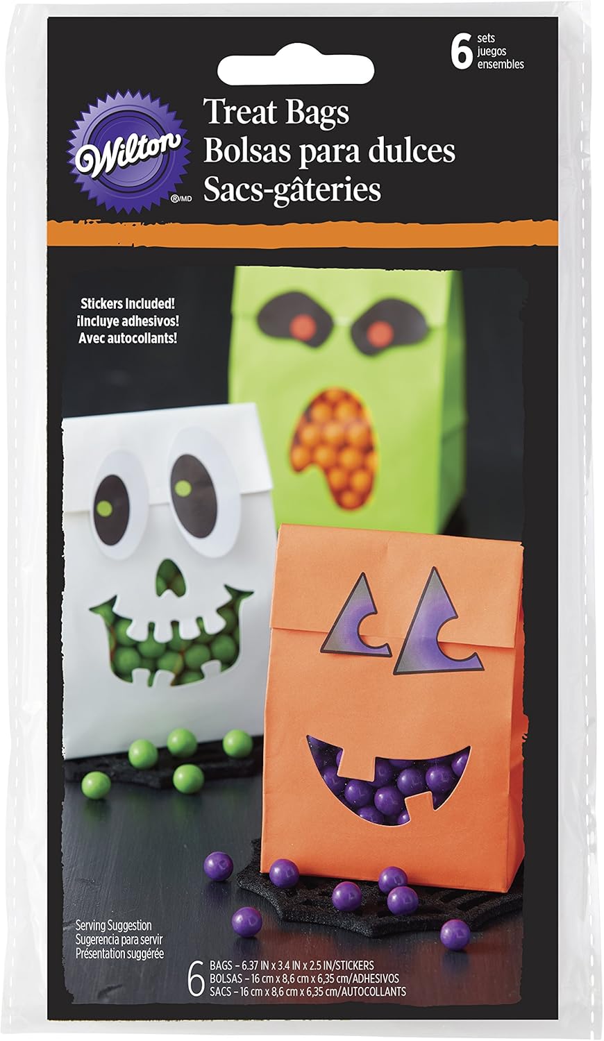 Avec ces sachets de friandises à thème Halloween de Wilton, apportez une amusante touche d’épouvante à votre fête ! Ils sont parfaits pour les bonbons, les popcorns et d’autres types de friandises. Les yeux adhésifs à coller sur les sachets apportent la touche finale. Les enfants vont les adorer.